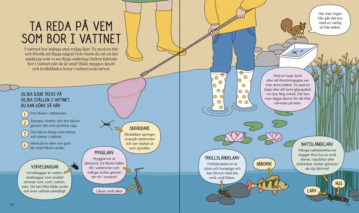 This book is full of ideas and tips for outdoor activities that you can do with your children. The book is divided into four chapters according to the activities best suited to each season, although much can be done at any time of the year. Alongside all the games, recipes, growing tips and crafts, you get many fascinating facts about big and small in nature. Karin Runesson is a biologist and freelance writer. She has two children and is a leader in the Naturskyddsföreningen's child and family activity Natursnokarna. Emilie Bergman works as an illustrator and graphic designer. She wants to communicate in a conscious way and always brings with her a reflection on gender, norms, equality, democracy and the environment. "If I had to decide, the children's outdoor book would be in all homes with children" Review of the book on Natursidan. Number of pages: 85