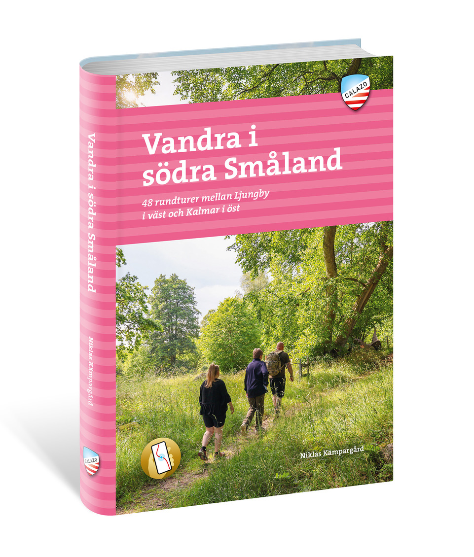 Den här boken beskriver 48 rundvandringar utspridda i ett område söder om Värnamo, mellan Ljungby i väster och Kalmar i öster. Bil underlättar när du tar dig runt, men många av vandringarna i boken kan du nå med kollektivtrafik. Varje karta i boken är försedd med en QR-kod. Skanna koden med ­mobilkameran så kan du enkelt följa turförslaget i telefonen.