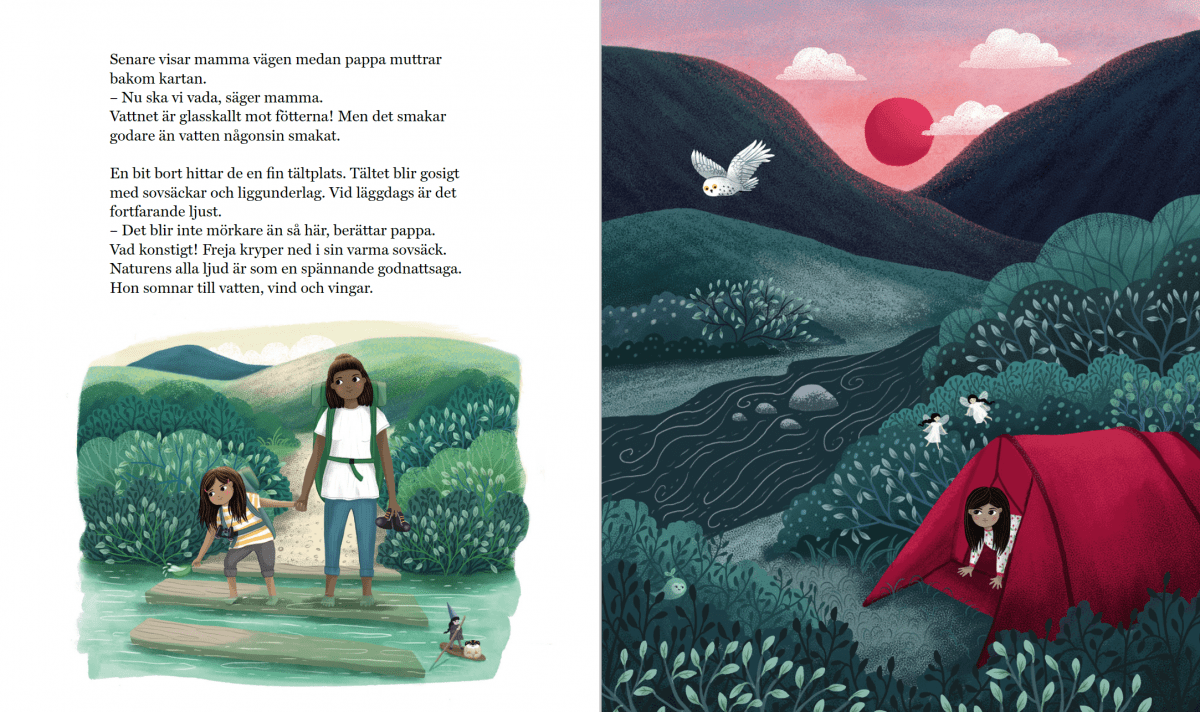 Freja and her parents are going out for a mountain hike. She longs for the trip but is also nervous. Because what if she can't bear to walk or if it's scary to sleep in a tent? The hike becomes an adventure among rolling mountains and bright nights. Freya meets lemmings and reindeer, experiences mountain stations and magical sunrises. But then the thunder starts to rumble and the storm moves in. How will it go now? Freja's first mountain hike is a picture book adventure that inspires outdoor life and nature discoveries. It is also a story about daring a little extra, about believing in yourself and about daring to face nature. The book is written by Emma V Larsson and illustrated by Maria Trolle. Emma V Larsson is a writer and journalist, specializing in outdoor life and nature. She has written several children's books that inspire children - and their parents - to find out in the woods and fields together. Maria Trolle likes to create with nature as inspiration. She has illustrated several picture books and also coloring books for adults. Maria and Emma have made several children's books together. The age category for the book is 3-6 years.