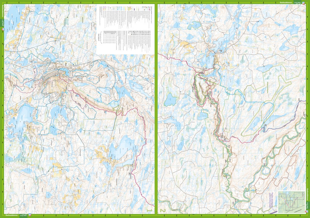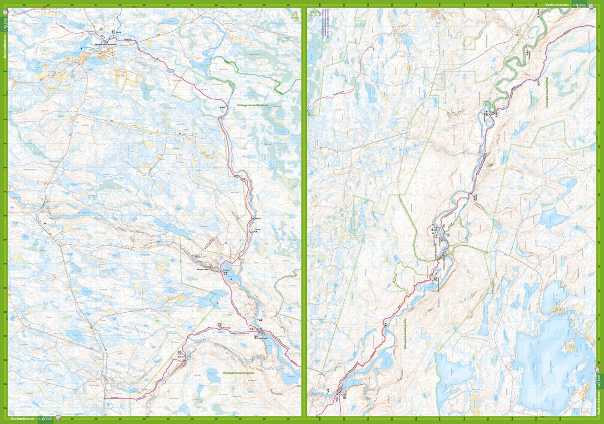 Dream hike and day trips Our most famous hiking route goes through the Oulanga National Park. Parts of it, the Pienen Karhunkierros and other trails can be covered as day trips. The four-part map presents the region on the best scale.