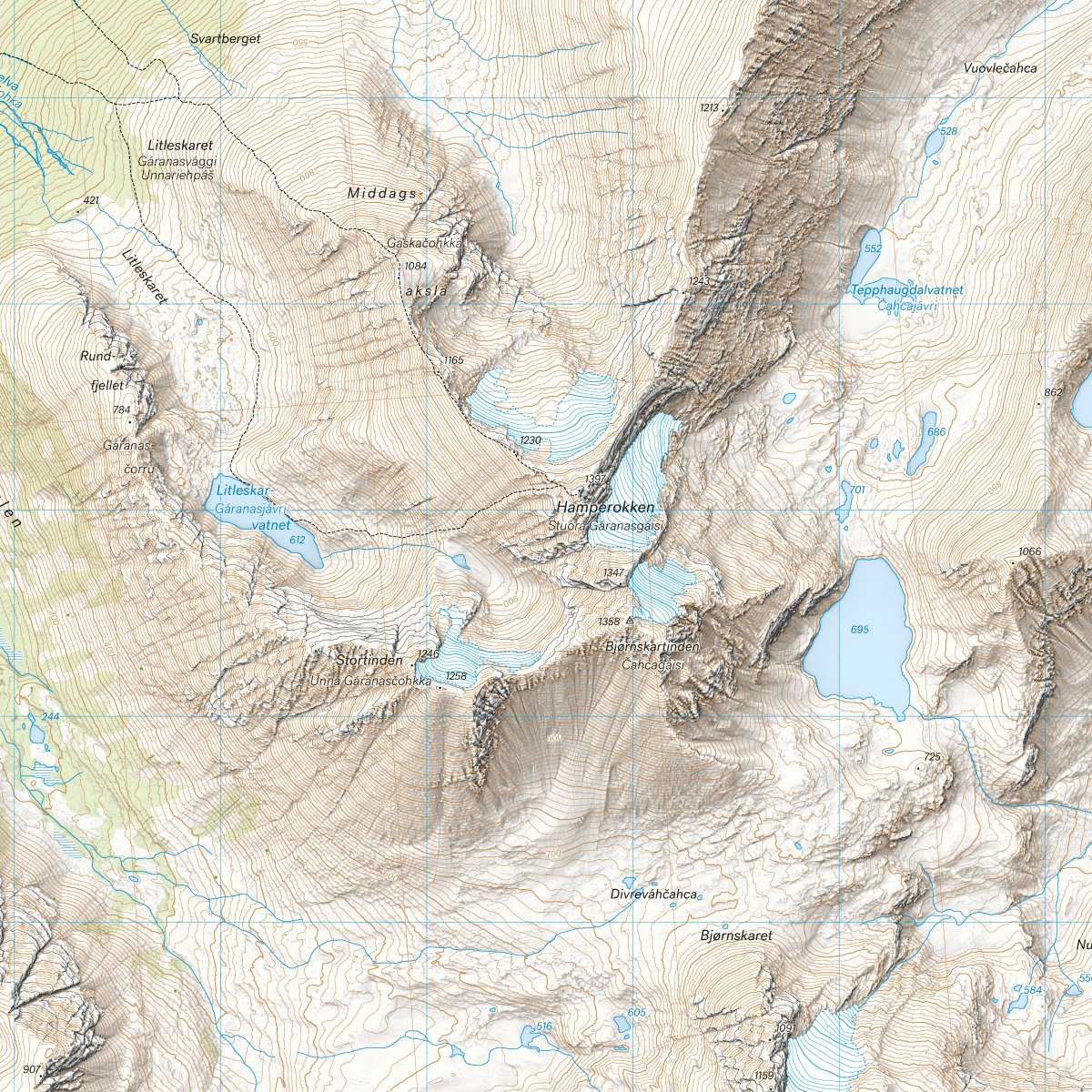 Calazo Høyfjellskart is a series of topographic maps specially developed for mountain activities in Norway’s most popular hiking and skiing regions. The maps are based on high-resolution LIDAR data, which provides exceptionally detailed and accurate terrain information – ideal for navigation in demanding alpine environments. Trail information is carefully updated using aerial imagery and local knowledge to ensure reliability. All maps are printed on durable Tyvek® material, making them completely waterproof and highly tear-resistant – perfect for use in all weather conditions, year-round.